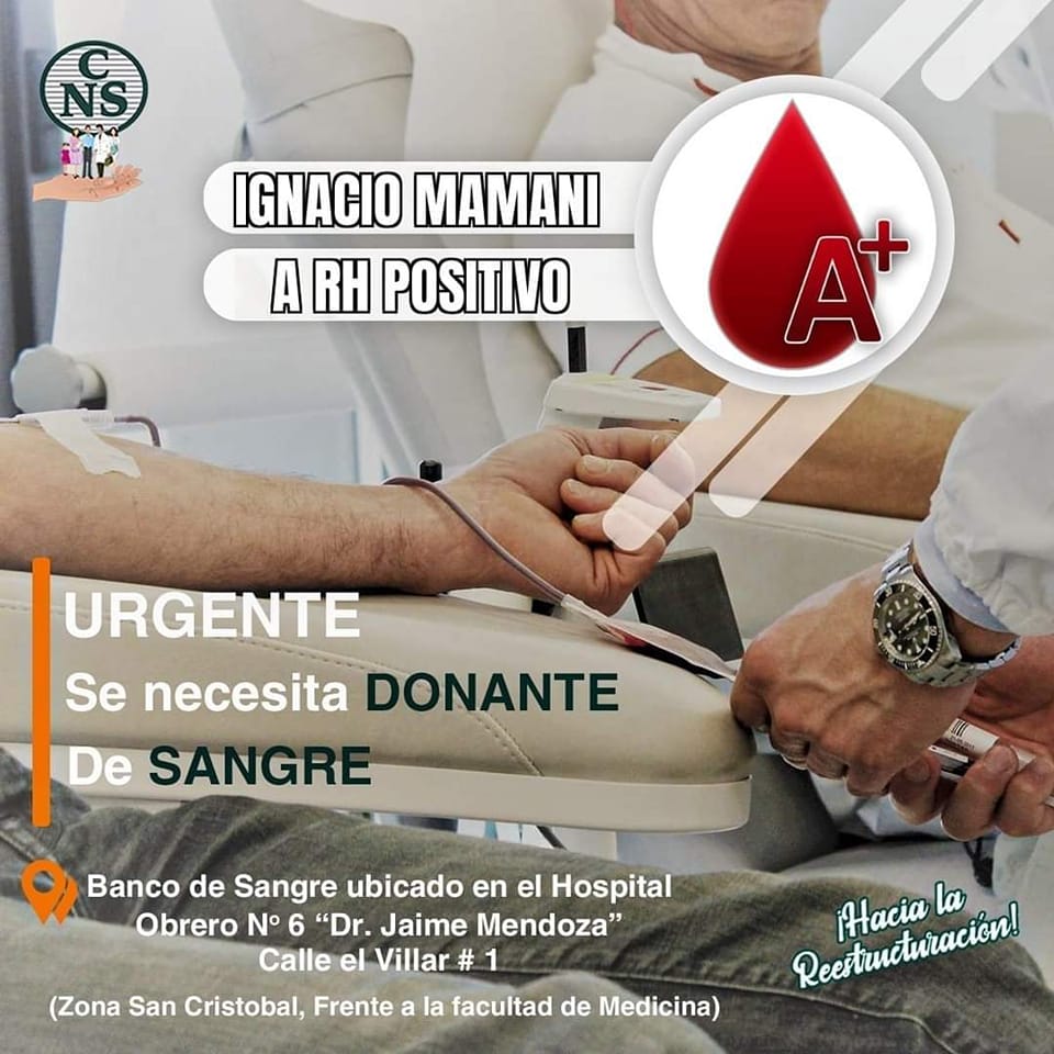 <div dir="auto">Nuevamente, necesitamos con suma URGENCIA donantes de sangre del Grupo A (+) para el Sr. IGNACIO MAMANI que hoy necesita de tu ayuda.</div>